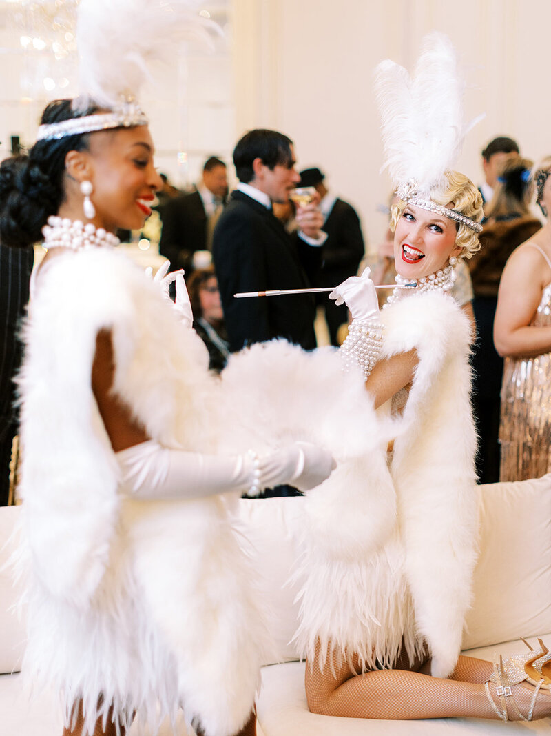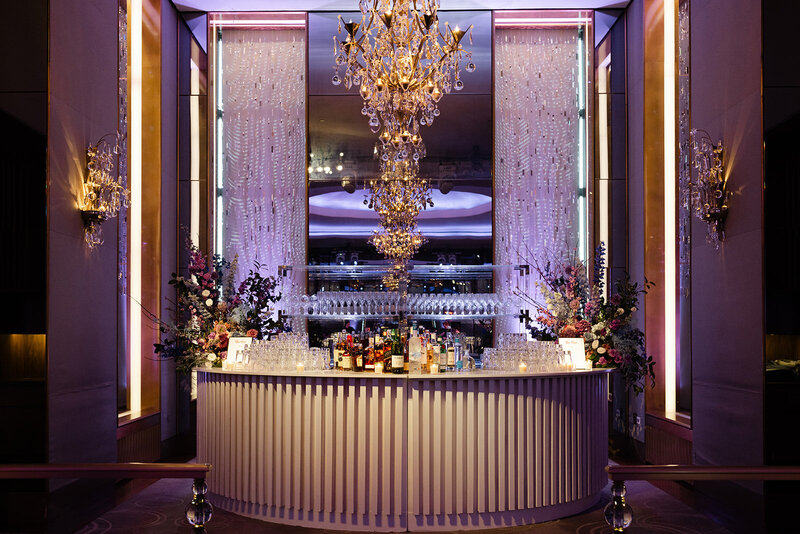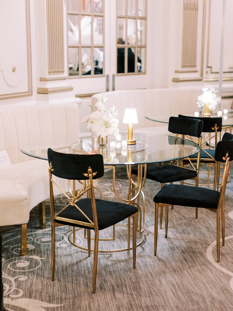 Browne & Towers has been privileged to partner with this client to plan multiple weddings throughout their family and were thrilled to bring a milestone birthday celebration to life for them as well. What could be more fun than a Gatsby inspired birthday party with champagne, caviar, flappers, and a surprise performance by a group favorite English rock band, Squeeze. The Lotte Palace proved to be the perfect location to host this glamorous black, white, and gold adorned soiree.
