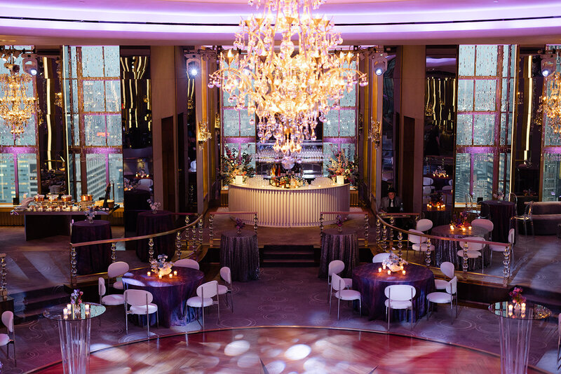 The Browne & Towers team designed this fun galactic inspired event at the renowned Rainbow Room to recognize a superb team exceeding their yearly sales goals. The color palette of deep blue, vibrant purple, and silver was rooted in the company branding and the event theme was inspired by the concept of reaching for the moon in sales this year and all the years following. This was an epic celebration with performances by a spectacular band, amazing culinary stations, and 360 degree city views that guests could enjoy throughout the evening.