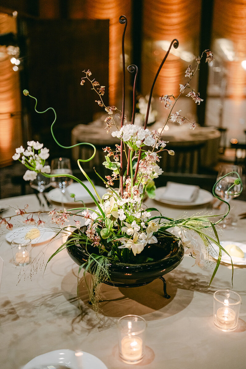 Inspired by the iconic 1950’s era architecture of the Pool and Grill, this couple embraced a mid-century modern decor direction paired with simplistic ikebana driven floral design.